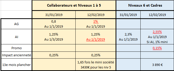 Lors de la deuxième réunion de négociation du 12/02/2019, la Direction propose les mesures suivantes :
